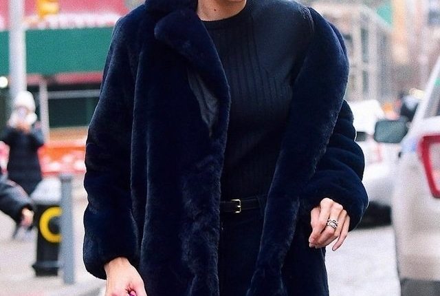 ٢- ستايلست المشاهير ميمي كاتريل Mimi Cutrell كانت السر وراء هذه الإطلالة الأنيقة لعارضة الأزياء جيجي حديد فقد جعلتها تضيف معطف فرو باللون الازرق الداكن لإطلالتها السوداء مع نظارة تعطي نفس الضي. ورغم أن اختلاف الألوان ليس كبيراً لهذه الدرجة، إلا أنها فكرة جديدة لك إذا كنت ترغبين في إعطاء إطلالتك السوداء لوك أكثر غموضاً. أعجبني أيضا ارتدائها لحقيبة فوشيا لامعة مناقضة تماما لملابسها مما أضاف لها الكثير من الحياة.