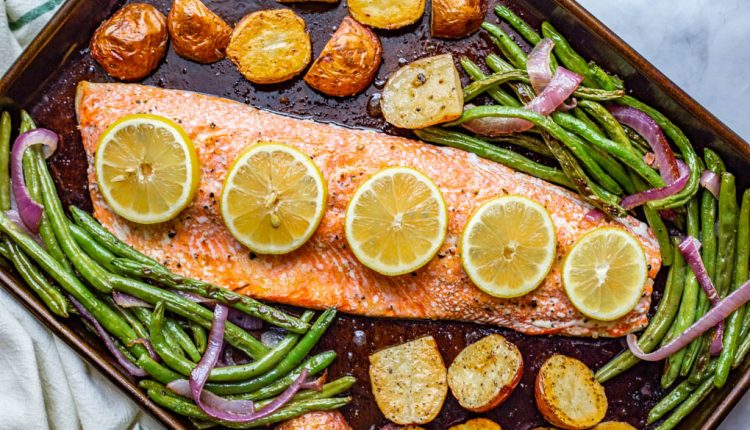 9. ضعي البطاطس المقطعة دوائر علي السمك ثم ضعيها في الفرن حتي تمام النضج وبالهنا والشفا