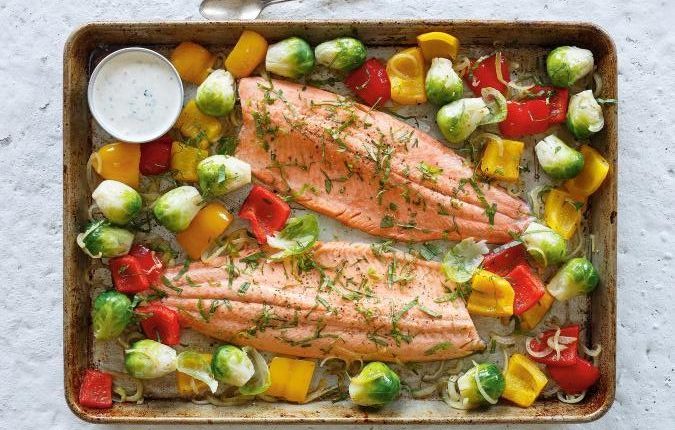 - تغطى بورق الفويل وتوضع في فرن على حرارة 250 درجة مئوية أول 15 دقيقة ثم تنزل الحرارة إلى 200 درجة مئوية لمدة 45 دقيقة أو حتى ينضج السمك.