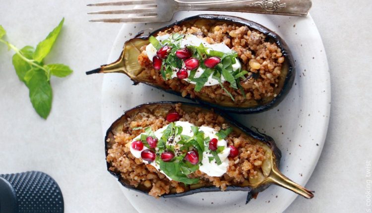 نصنع شق ف البذنجان ونضع الحشو داخله نضع البذنجان ف صينيه ونضع له المرق بالماء وعصير الليمون والسكر والسمنة قليل ف الفرن ثم نزينه بالبقدونس واللوز