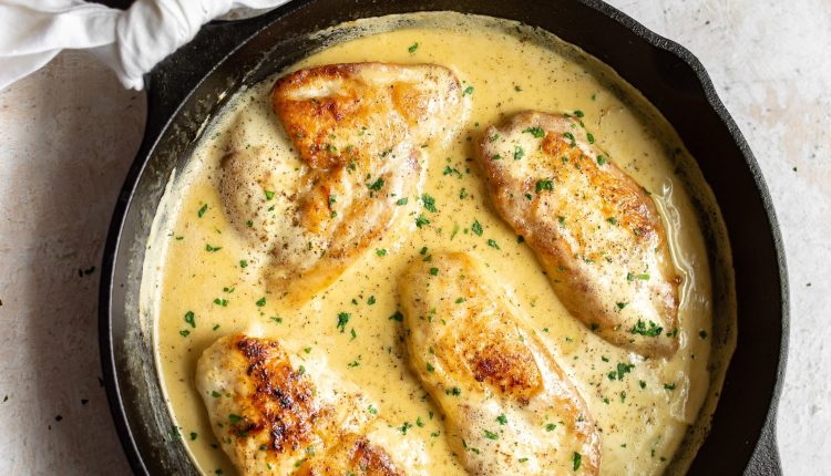 صدور الدجاج بكريمة الخردل والليمون