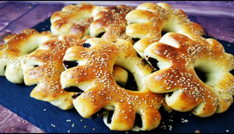 ضعي دوائر المعروك في الصينية كي ترتاح لمدة نصف ساعة، قومي بدهنها بخليط من البيض والحليب والفانيلا كي يضفي عليها لمعة جميلة، ثم رشيها ببذور السمسم بوفرة.