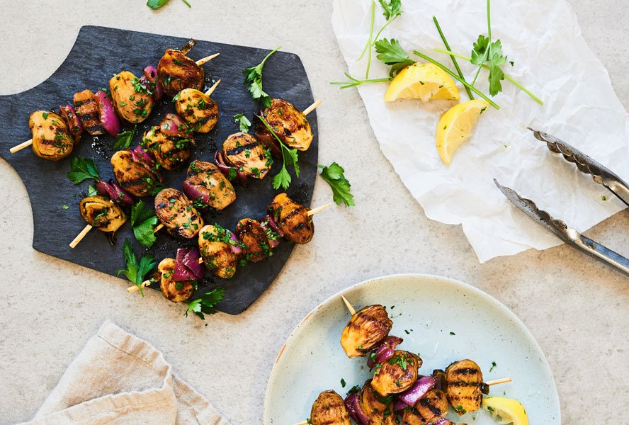 أسياخ اللحم بالسمسم: حضّروها مع الأناناس والتفاح