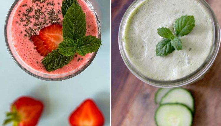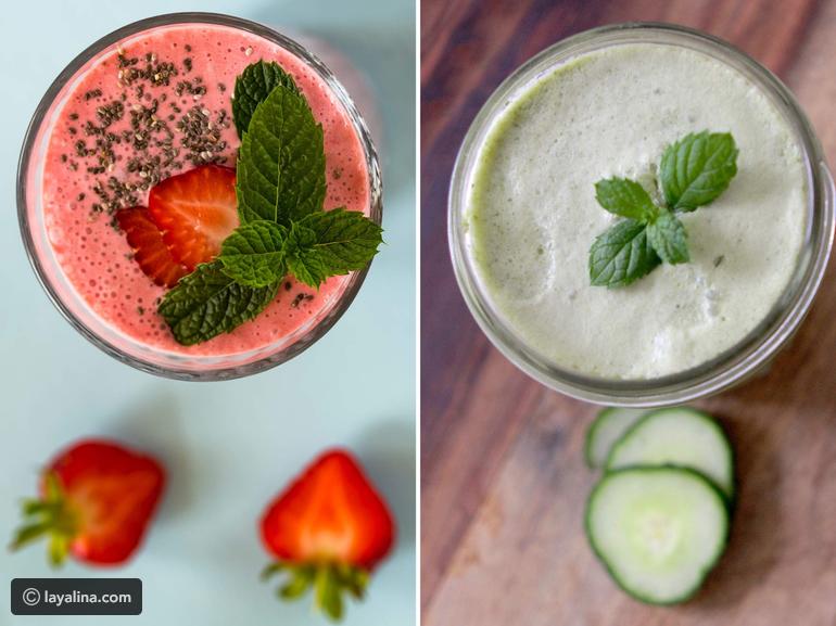 تحتاجين إلى ملعقتين كبيرتين من النعناع الطازج، كوب ونصف من حليب اللوز غير المُحلى، حبة أفوكادو، نصف كوب من الخيار المفروم، ربع كوب من السبانخ النيء، ربع كوب من الكرنب، عصير نصف ليمونة.