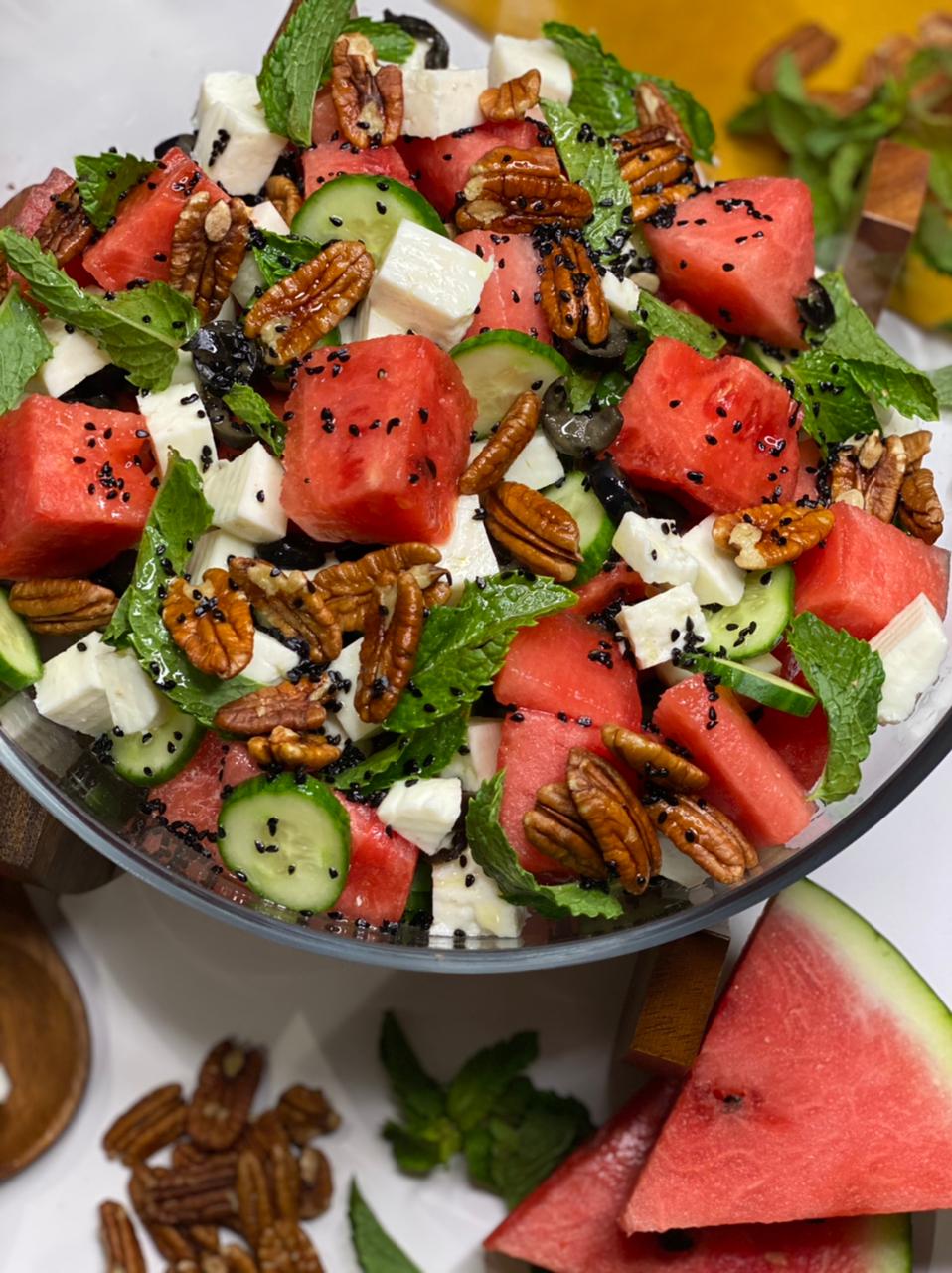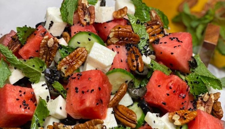 سلطة البطيخ وجبنة الحلومي… خفيفة ومنعشة
