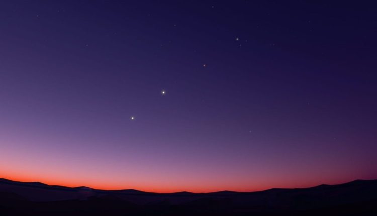في ظاهرة فلكية نادرة، تمكّن محبو الفلك من رؤية خمسة كواكب مع هلال القمر، وهي عطارد والزهرة والمريخ والمشتري وزحل، والمعروفة بأنها “الكواكب المرئية”، حيث اصطفت على قبة السماء بحسب ترتيبها الطبيعي من حيث البعد من الشمس.