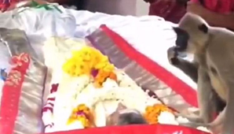 ويُظهر الفيديو، الذي تم التقاطه في مدينة باتيكالوا في سريلانكا، القرد وهو يجلس بالقرب من نعش الرجل ويحاول إيقاظه.