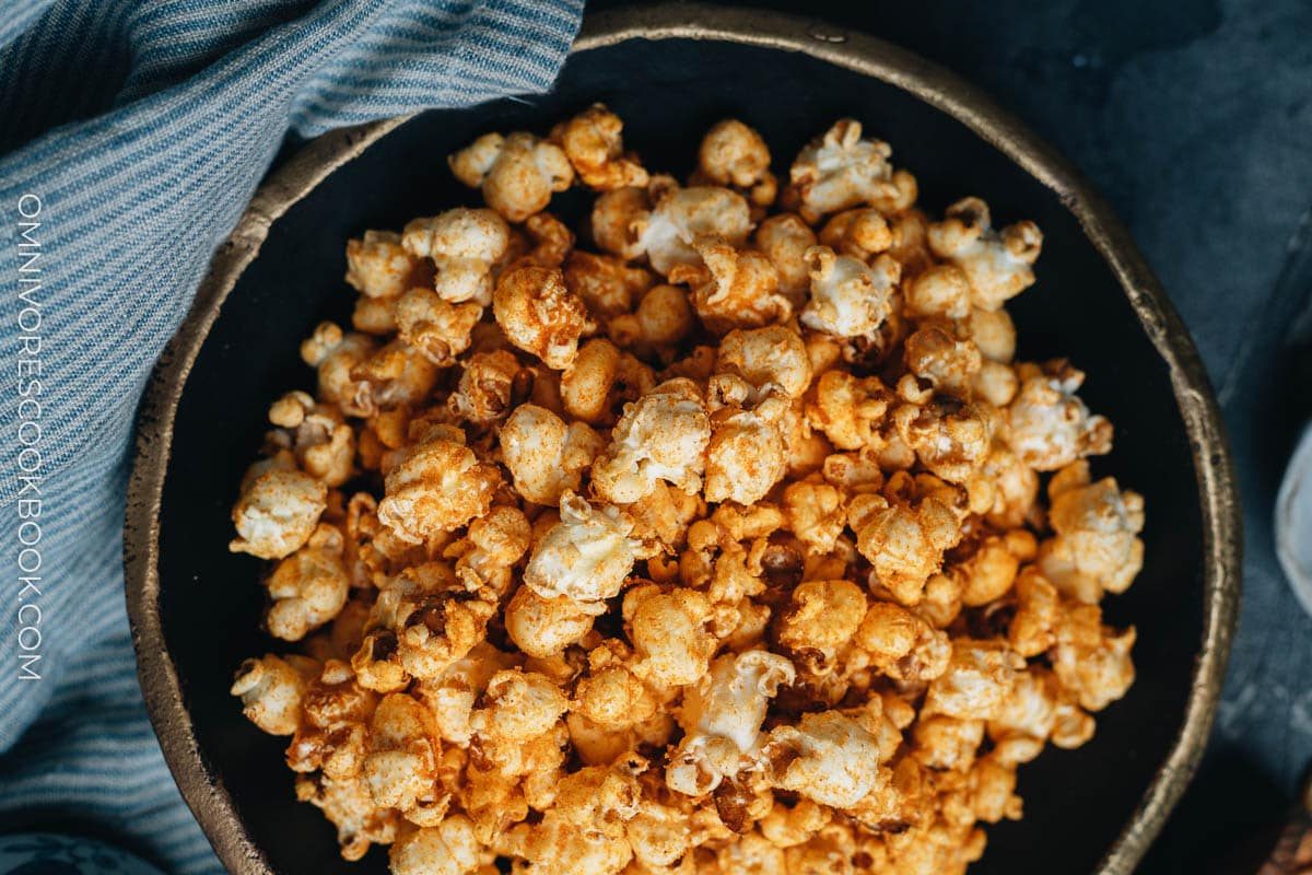 ضعي الفشار في طبق التقديم، وقدميه على الفور.