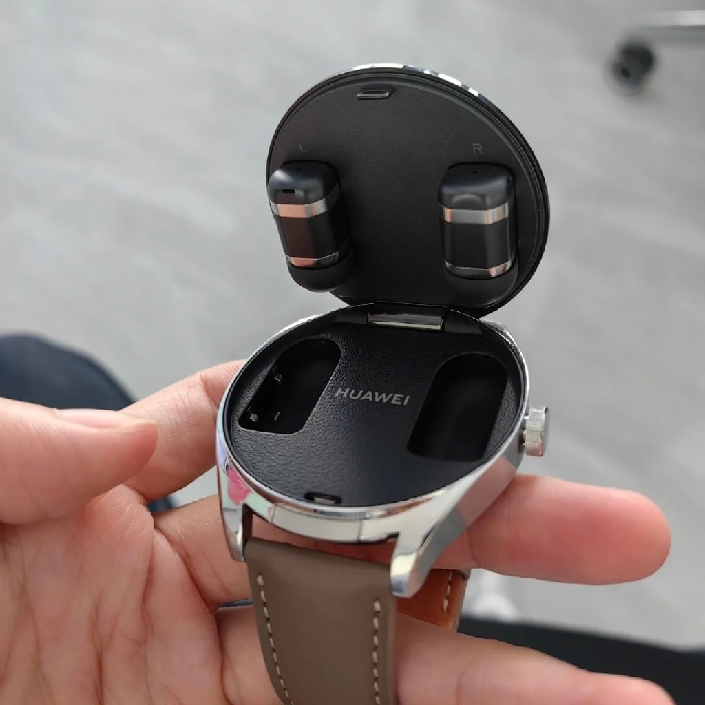 وحصل موقع “Huawei Central” على صور تشير إلى أن سماعات الأذن متصلة بالجانب السفلي من شاشة الساعة. التصميم مشابه لتصميم سلسلة ساعات “Watch GT“، مع علبة فولاذية وسوار جلدي، ويُقال إنها تعمل بنظام “HarmonyOS” من “هواوي”. ولن يكون من المستغرب وجود بطارية كبيرة لتتمكّن الساعة من تشغيل نفسها وشحن السماعات.