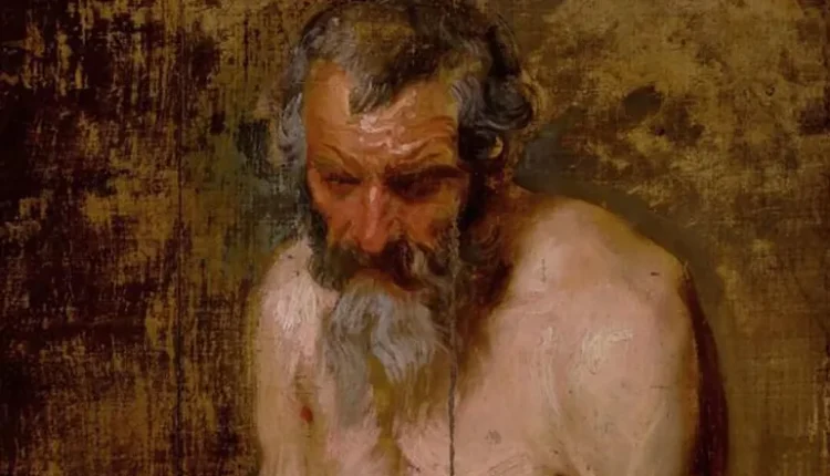 ويرجح خبراء أن يكون فان دايك قد رسم تلك اللوحة التحضيرية في مطلع شبابه بين عامي 1615 و1618 عندما كان يعمل في مرسم الفنان الفلمكني بيتر بول روبنس بمدينة أنتويرب، ويصور خلالها رجلا عجوزا عاريًا جالسًا على كرسي وعنونها باسم “القديس جيروم”.