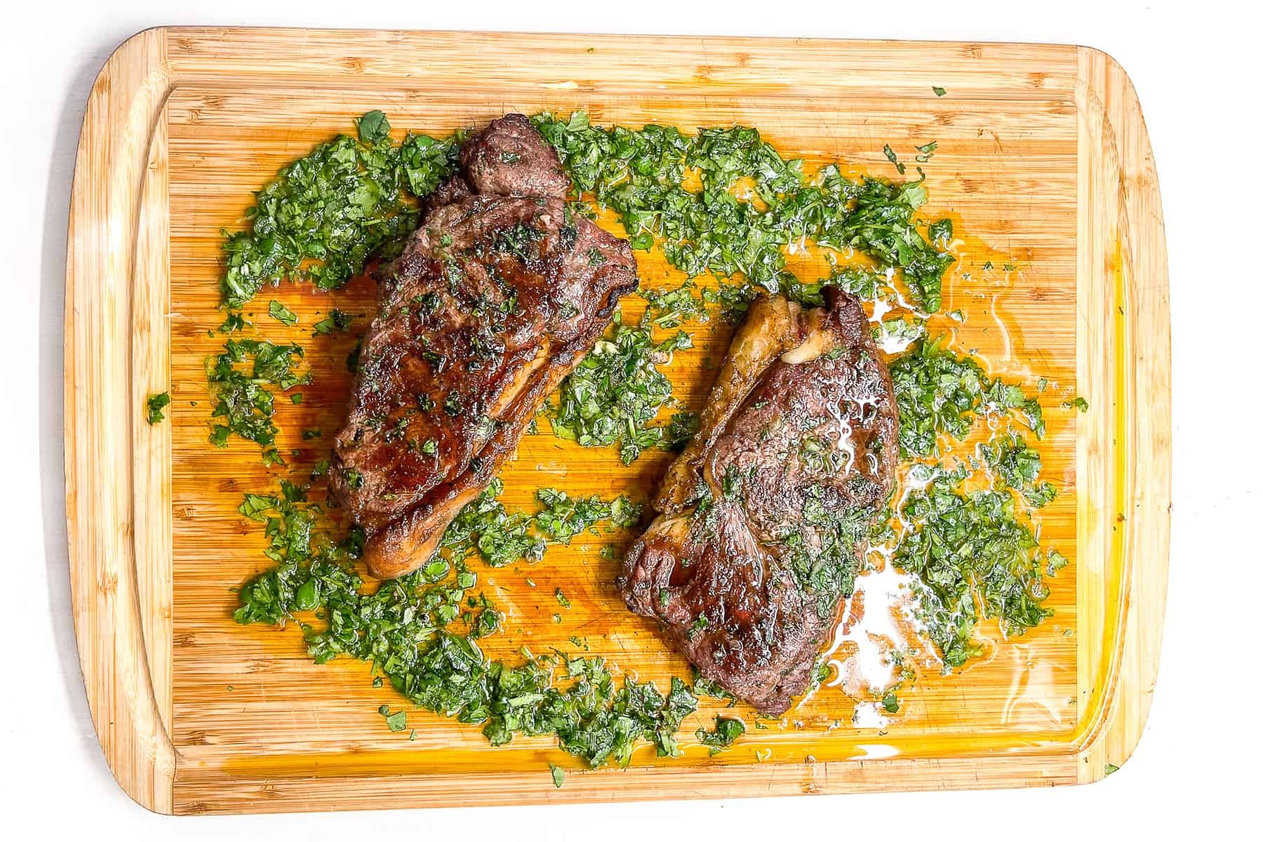وصفة نيويورك لشوي شرائح اللحم مع صلصة الثوم والكزبرة الطازجة، تحوّل الشواء المنزلي إلى مطعم ستيك هاوس فاخر. وتخيّلوا مشهد شرائح اللحم المشوية باتقان والساخنة، مغمورةً بصلصة الأعشاب اللذيذة.