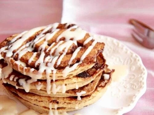 #بانكيك السينابون وصفة مبتكرة لطعم ولا أشهى تُحضّر من عجينة البانكيك الإسفنجيّة الهشّة وصلصة القرفة الشهيّة، ثم تُقدَّم كطبقات من البانكيك، مصفوفة فوق بعضها، مع “فروستينغ” السكّر بالفانيليا.