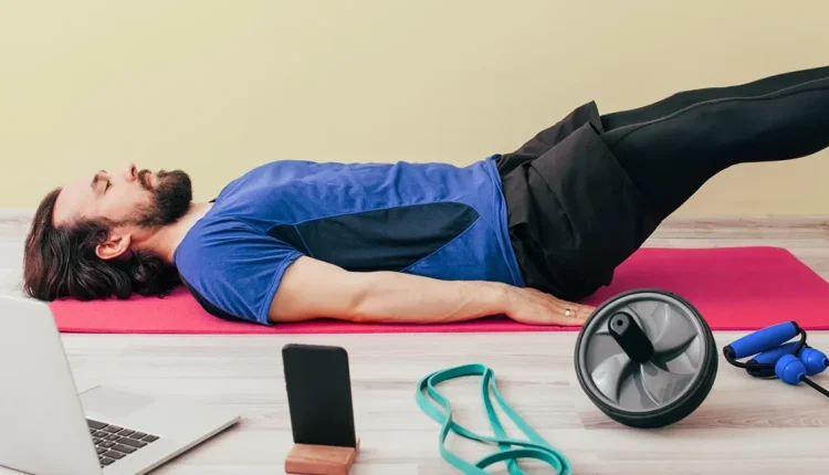 - استلقِ على ظهرك مع ثني الركبتين، وتكون القدمين مسطحة على الأرض.