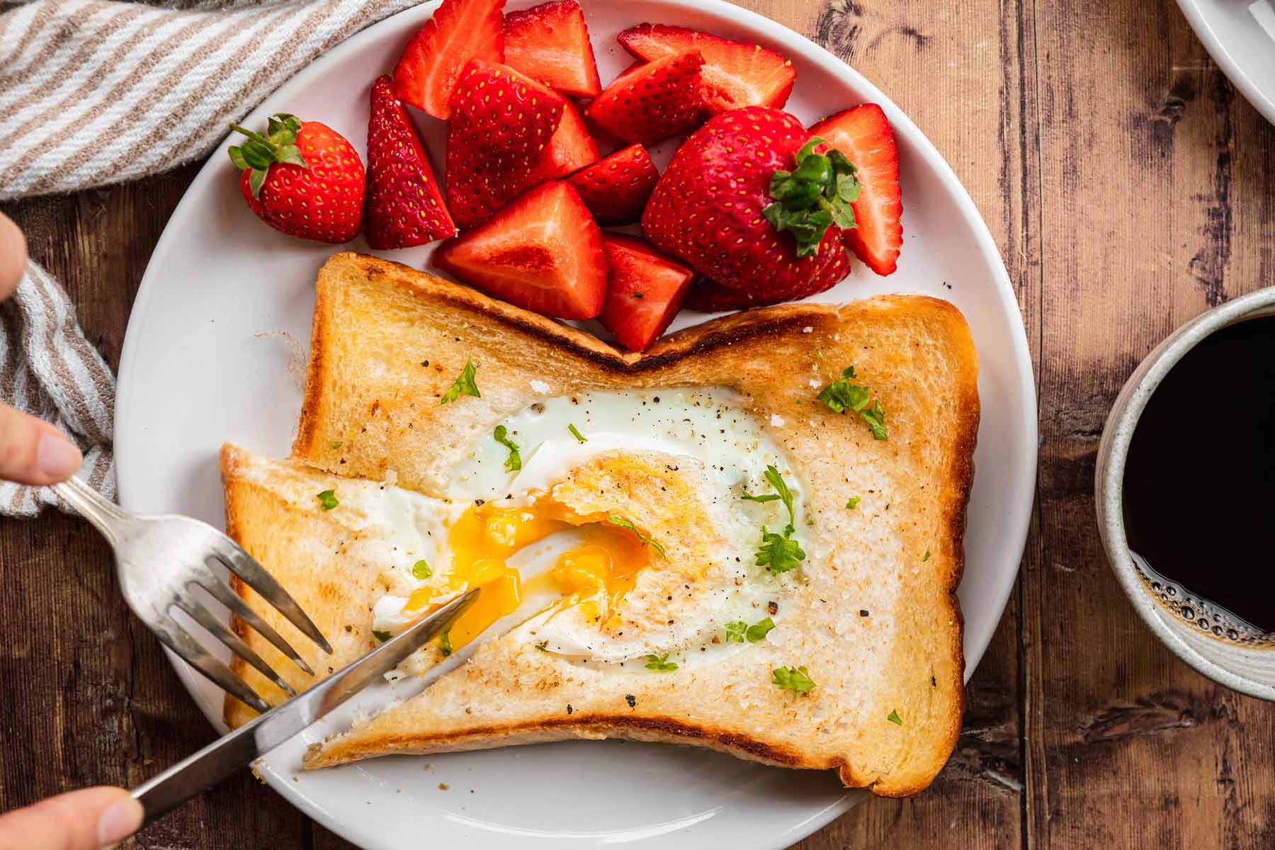 - تقديم التوست بالبيض المقلي والجبن