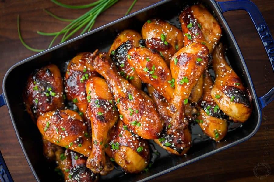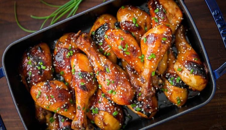 5. اسكبي صلصة العسل فوق الدجاج والبطاطس، وانثري حبات الفلفل الأسود على الوجه.