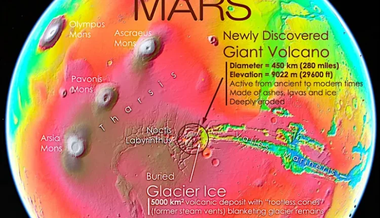 اكتشاف بركان عملاق بارتفاع 9000 متر على سطح المريخ