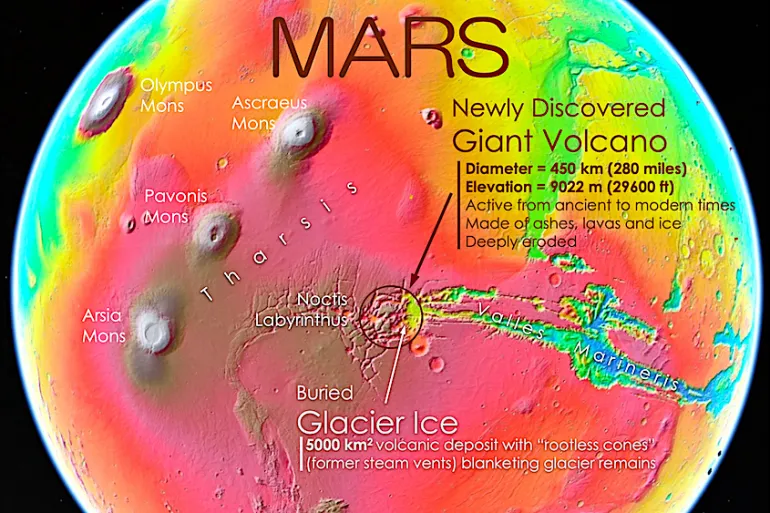 وحسب البيان الصحفي الذي أصدره فريق معهد سيتي ومعهد المريخ المشاركين في الاكتشاف، “فقد كشف العلماء عن بركان عملاق كان يختبئ على مرأى من الجميع في واحدة من أكثر مناطق المريخ شهرة، وبسبب التآكل الشديد الذي تعرض له أصبح غير قابل للتعرف عليه”.