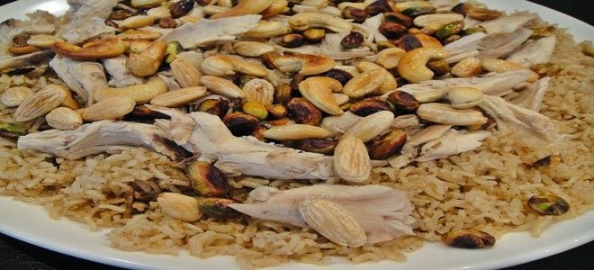 – الخطوة 4: بعد أن ينضج الأرزّ، نضعه في صحن التقديم، ونضع عليه الدجاج المحمّر والمكسّرات المقليّة المفضّلة لدينا ونقدّمه.