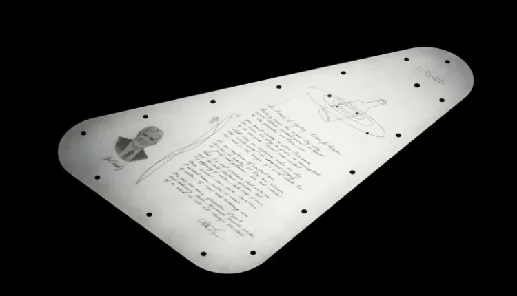 وتعرض الرسالة الفضائية عناصر مرئية على كلا جانبيها، وهي مصنوعة من معدن التانتالوم المعروف بمقاومته للتآكل، مما يعني قدرته على الصمود لملايين السنوات في ظل الإشعاعات الكونية الشديدة.