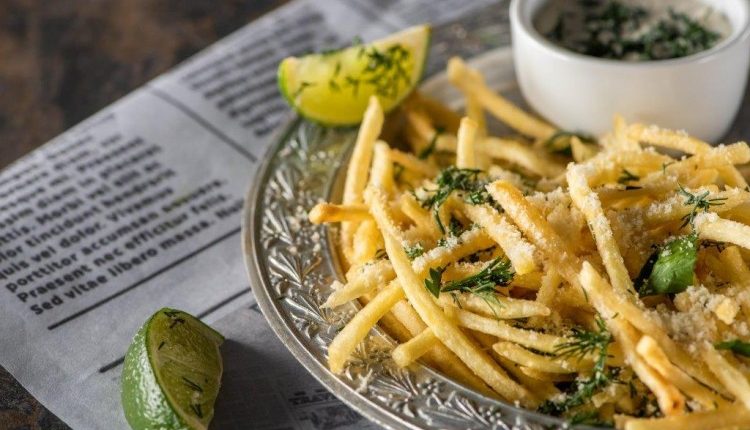 - ضعي البطاطا المقلية في طبق التقديم، وأضيفي فوقها صوص الكريمة، ثم زينيها بجبن البارميزان والبقدونس.