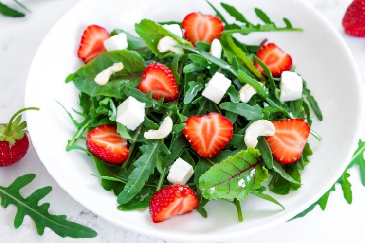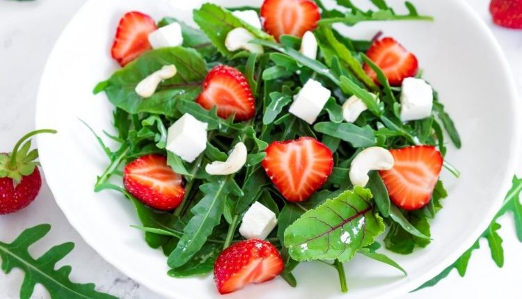 - في وعاء للخلط، اخلطي أوراق الجرجير مع الفراولة، والبصل، وقومي بإضافة القليل من عصير الليمون، وزيت الزيتون، ثم ضعيهم في طبق التقديم.