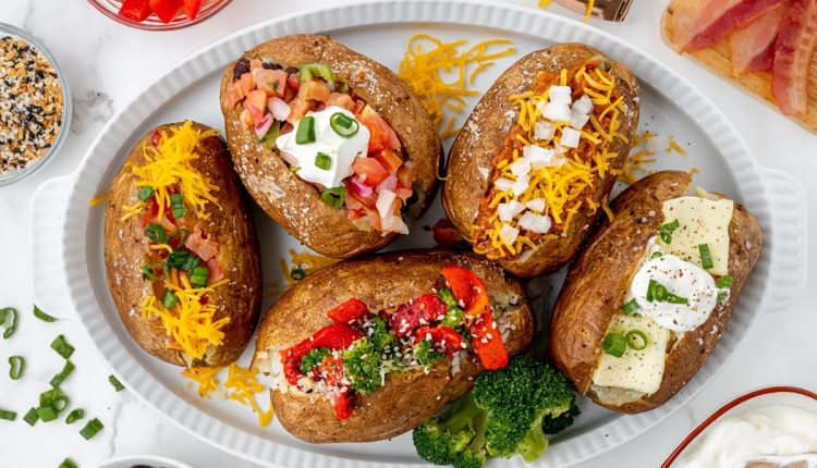 بطاطا مشوية محشية بالكريمة والخضار