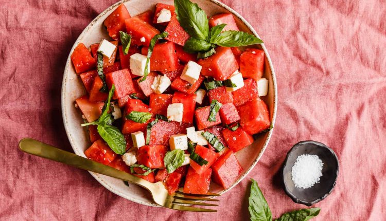 سلطة البطيخ بمكعبات الجبن الأبيض