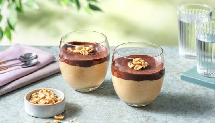 5. صُبي المزيج في أكواب التقديم، وزيني بالكريمة المخفوقة، وصوص الكراميل، والفول السوداني.