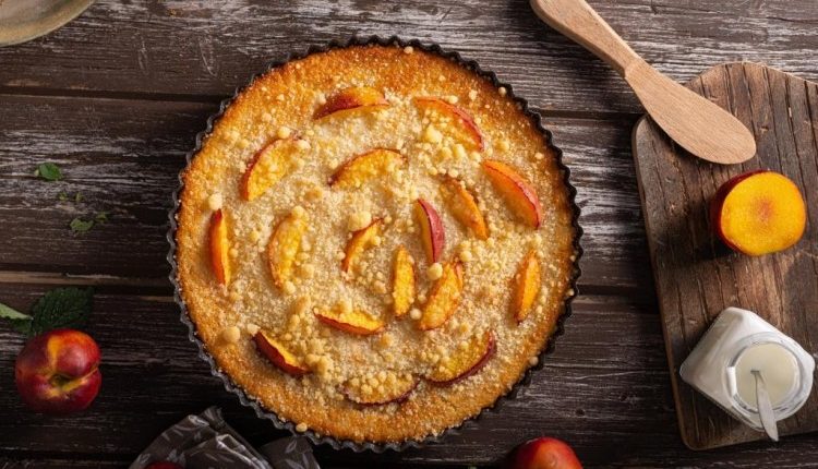 - زيني الطبق بالزبادي بنكهة الفانيليا أو الكريمة المخفوقة والخوخ المقطع قبل التقديم.